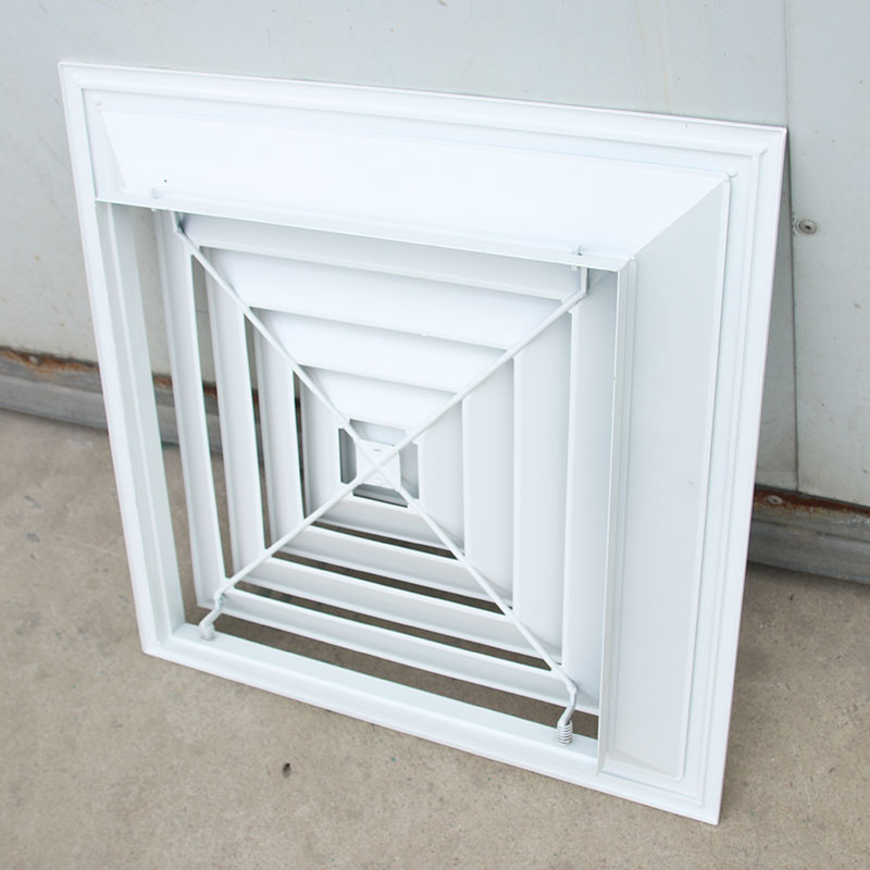 方形散流器(铝合金散流器)优点及适用范围:气流属贴附(平送)型,适用于播音室、医院、剧场、教室、音乐厅、图书馆、游艺厅、剧场休息厅、一般办公室、商店、旅馆及体育馆等。